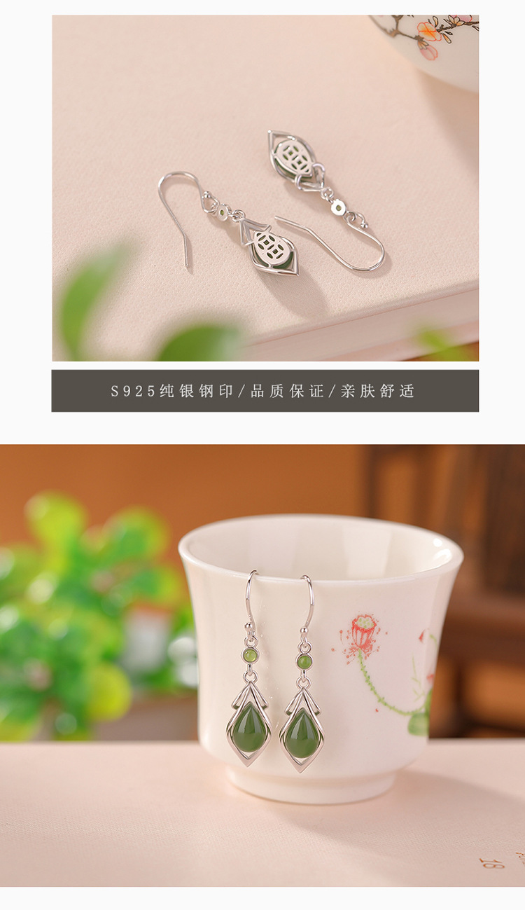 S925 Silver Nephrite Earrings - Customizable